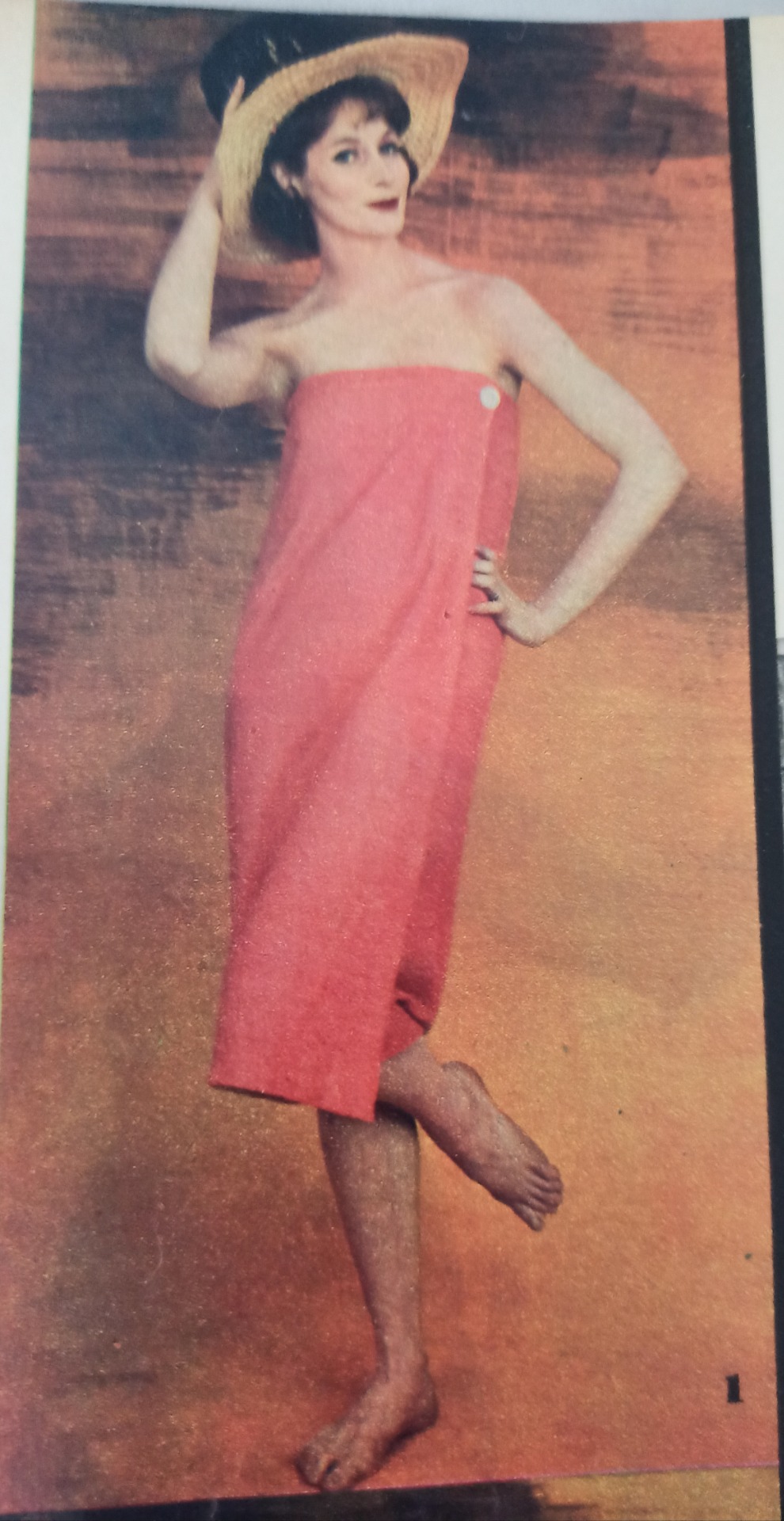 E' il lenzuolino da bagno che si applica addosso come un accappatoio succinto, rifinito da un orlo dove è applicato il bottone di madreperla.