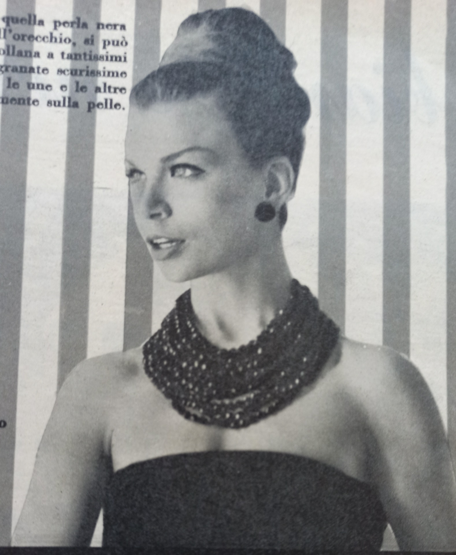 Con quella perla nera all'orecchio , si può portare una collana e tantissimi fili, di granate scurissime o di jais,deliziose le une e le altre messe direttamente sulla pelle