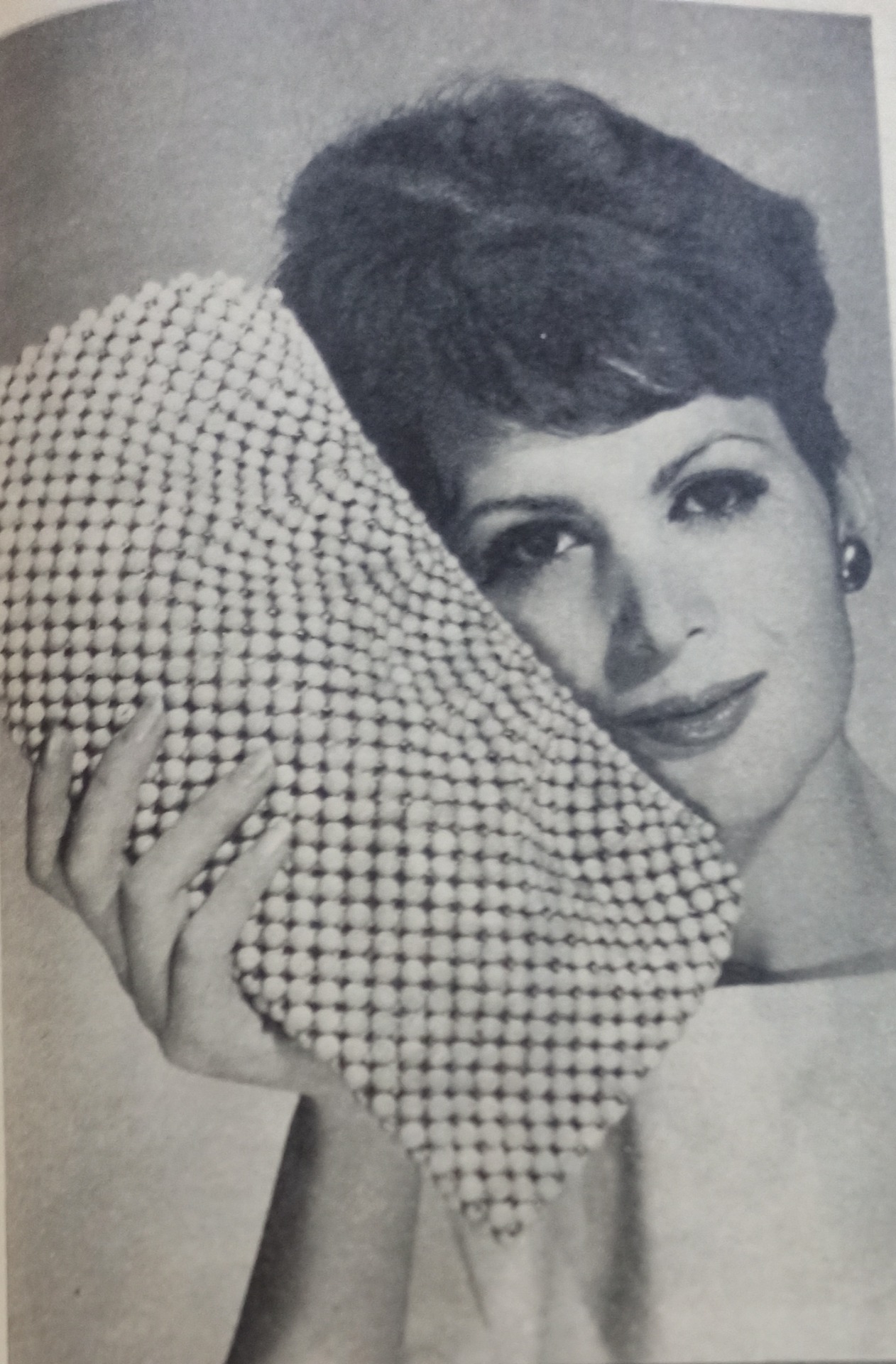 Senza manopola e con la cerniera invisibile , questa borsetta di perle è per sera o per pomeriggio elegante. Creazione Josef.